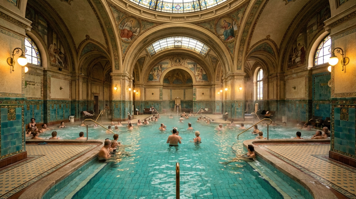 솔직히 말하면 세체니는 "온천"이라기보다 "거대한 온수 놀이공원"에 가까워요. 뜨끈한 물에 조용히 몸을 담그고 싶은 분이라면 겔레르트가 더 맞을 수 있어요. 겔레르트는 실내탕 온도가 35~40도라 확실히 더 뜨겁거든요.